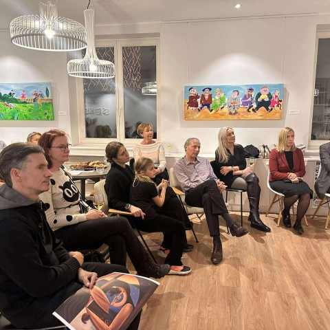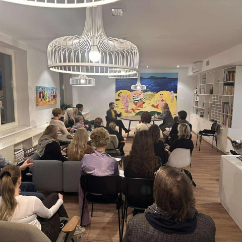Kliiniline psühholoog, psühhoterapeut Katri-Evelin Kalaus viis läbi „kliinilise intervjuu“ August Künnapuga tema maalinäituse „RAVIMATU HUUMOR“ raames. Kuulajad said teada teada väga intiimset infot kunstniku ja tema sisemaailma kohta, samuti enam aimu antud näituseni jõudmise teekonnast.