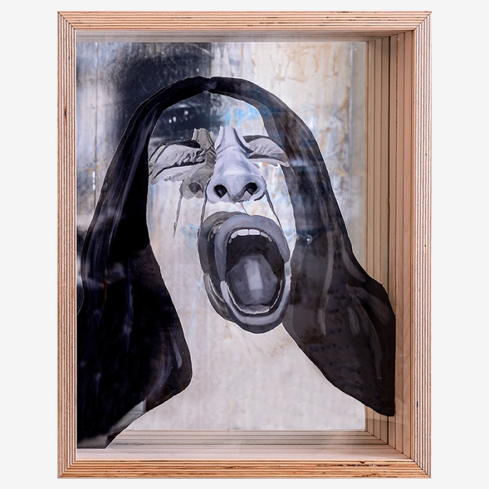 Segatehnika (õli, pleksiklaas, peegel, puit)